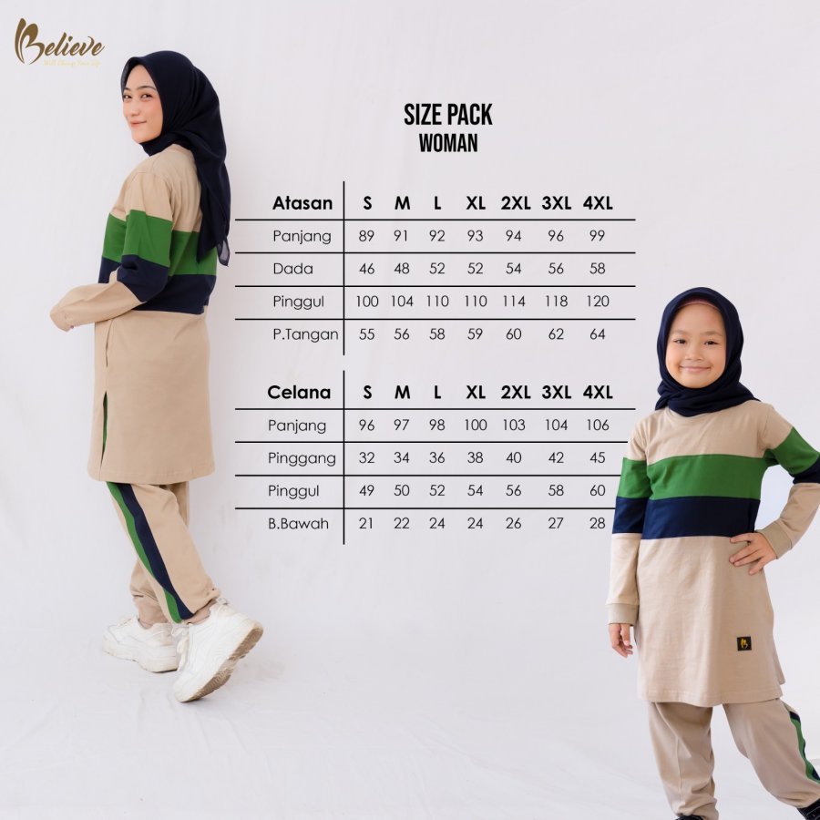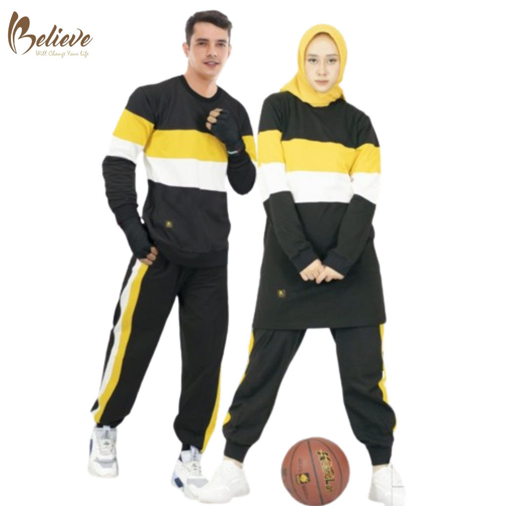 Believe BMS 35 BMS 36 Couple Setelan Baju Olahraga Wanita Pria Laki Laki Muslim Kaos Katun Combed