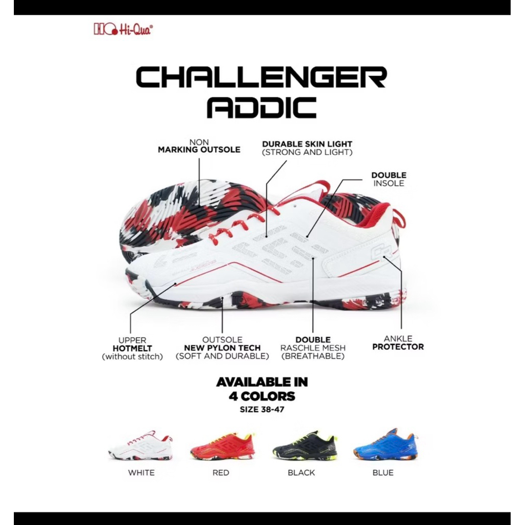 Sepatu Badminton Hq Hi-Qua Terbaru New Challenger Addic Original