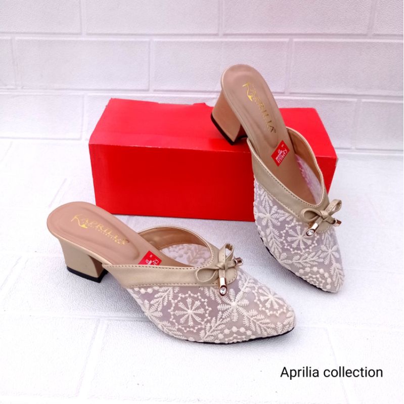 Heels pesta wanita hak tahu 5cm terbaru kekinian/sendal selop brukat pengantin wanita/sandal pesta kondangan perempuan b