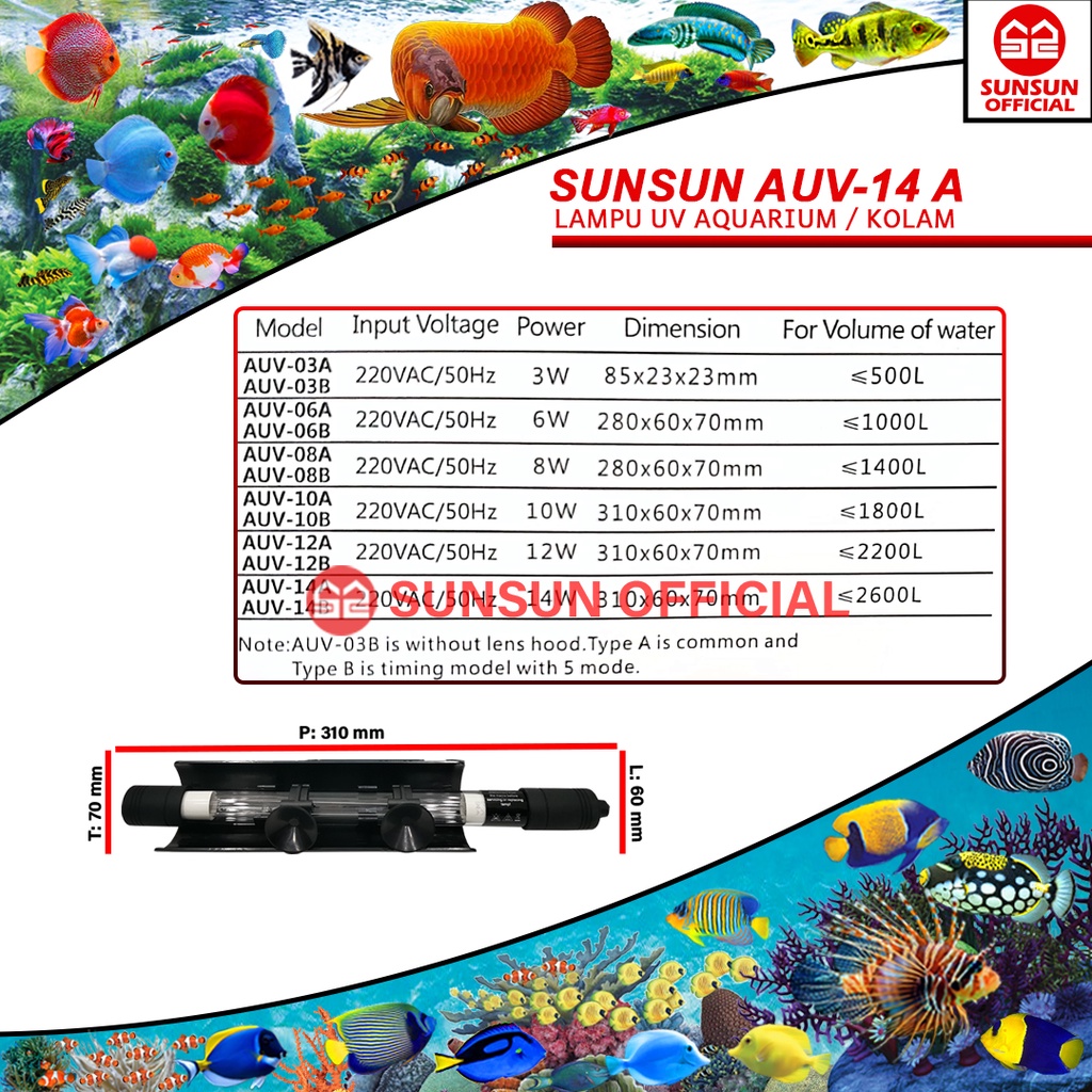 SUNSUN UV-C AUV 03A/06A/08A/10A/12A/14A Series UV Lamp Kolam Aquarium Aquascape