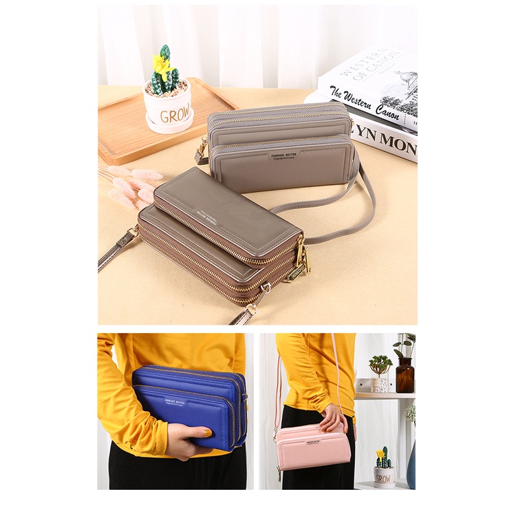 Tas Selempang FY 7488 – Dompet Panjang 3 Resleting Elegan + Bonus Card Holder