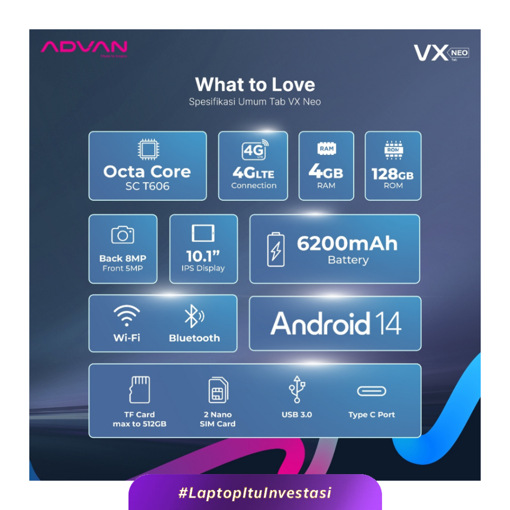 Advan Tab VX Neo Sketsa 3 10.4” 4GB 128GB Octa Core Dual SIM Card 4G LTE Tablet