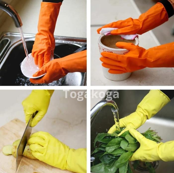 SARUNG TANGAN KARET PANJANG ISI 2PCS LATEX SILIKON RUBBER ANTI AIR