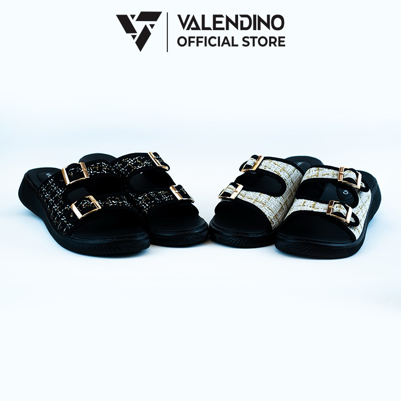 VALENDINO Sandal Wedges Wanita Eksklusif Elegan Casual Classy Hitam Cream
