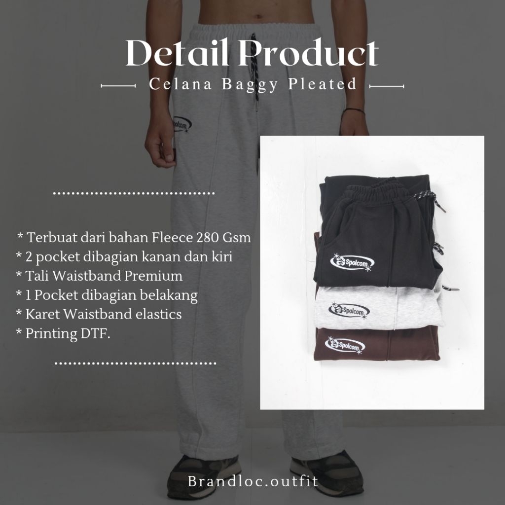 Celana baggy loosepants pleated sweatpants cotton fleece 280 gsm (unisex) pria wanita