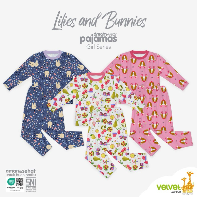 Piyama Dreamwear Velvet Junior Piyama Big size Anak 2-3-4-5-6-7-8-9-10 Tahun