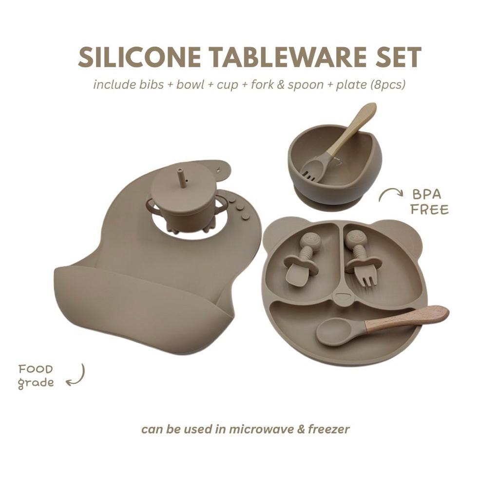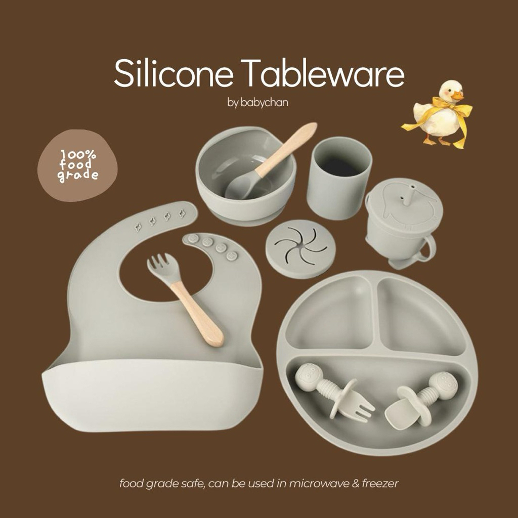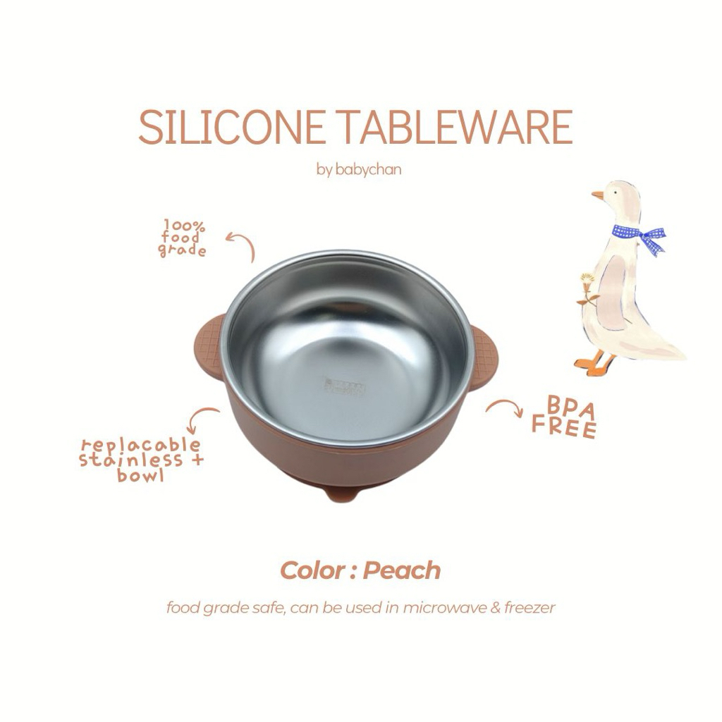 BABYCHAN - Silicon Tableware set tempat makan bayi silicon set mangkuk stainless bayi