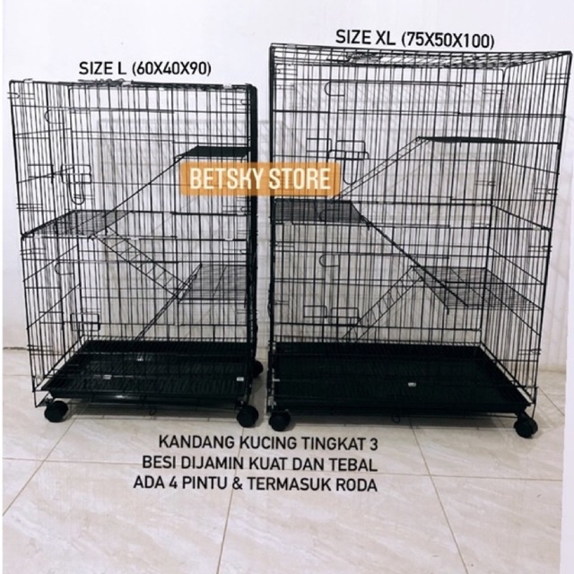 Kandang kucing tingkat 3 Besi Tebal dan Kokoh 4 Pintu