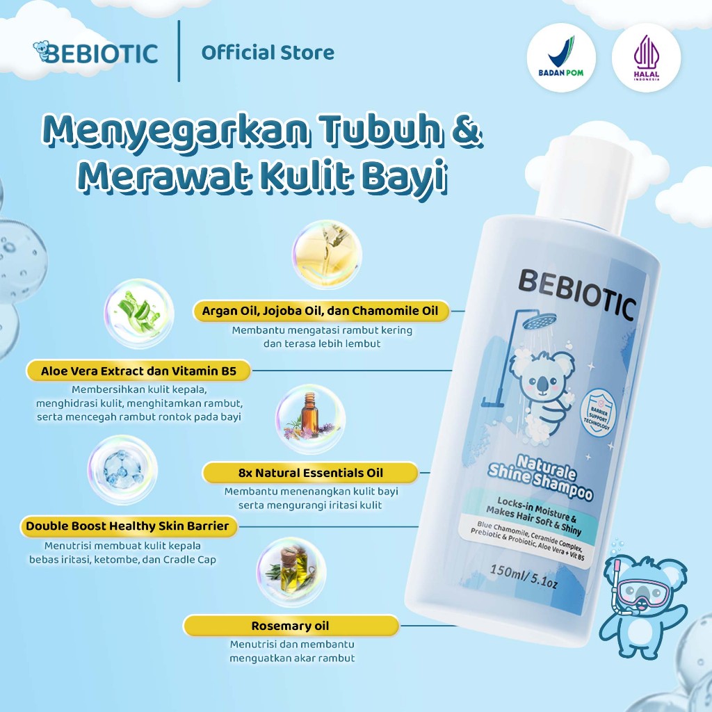 Bebiotic Naturale Shine Shampoo Bayi 150ml - Aloe Vera & Chamomile - Membersihkan Rambut & Kulit Kepala Bayi Cocok Untuk