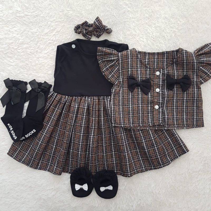 Baju Bayi Darling Dress Set Katun Mix Tweed
