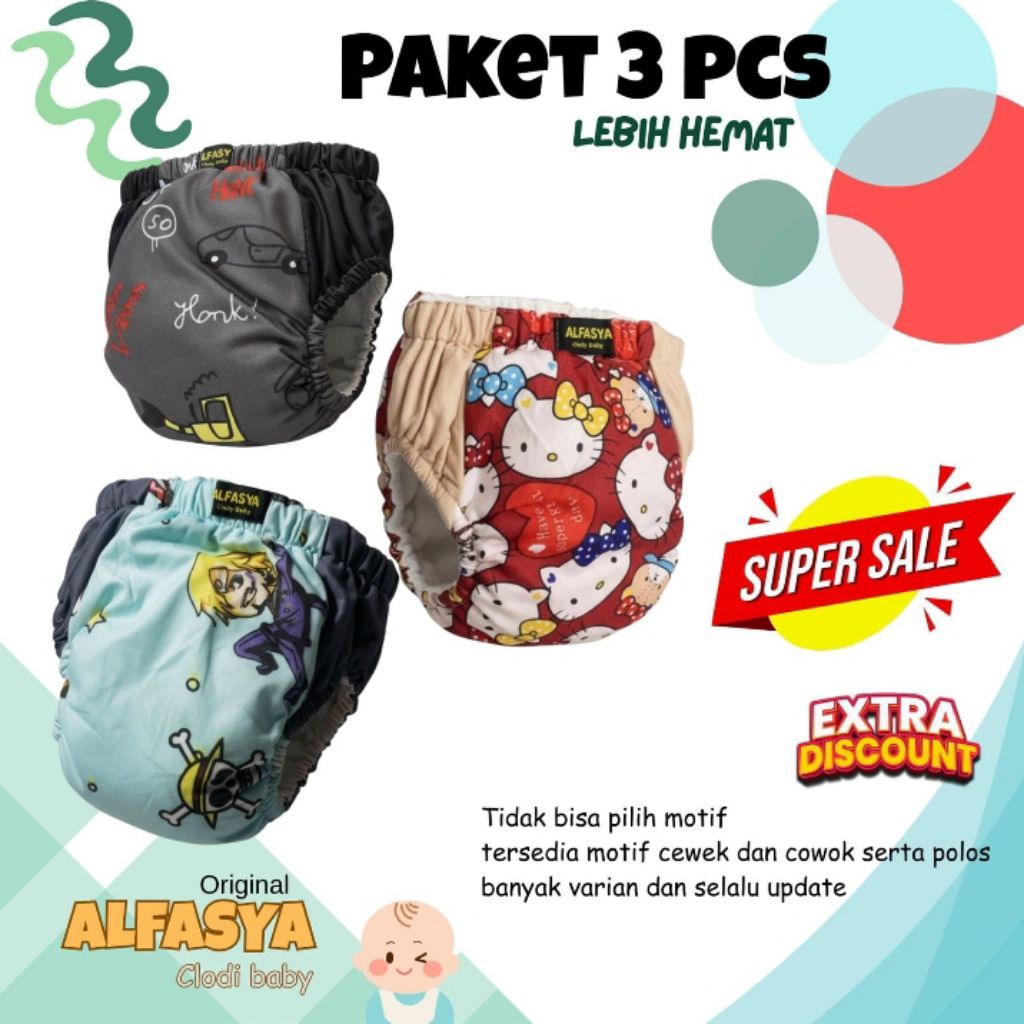 [ 3 Pcs ] Clodi Alfasya Popok Kain Cuci Ulang Paket Hemat Promo