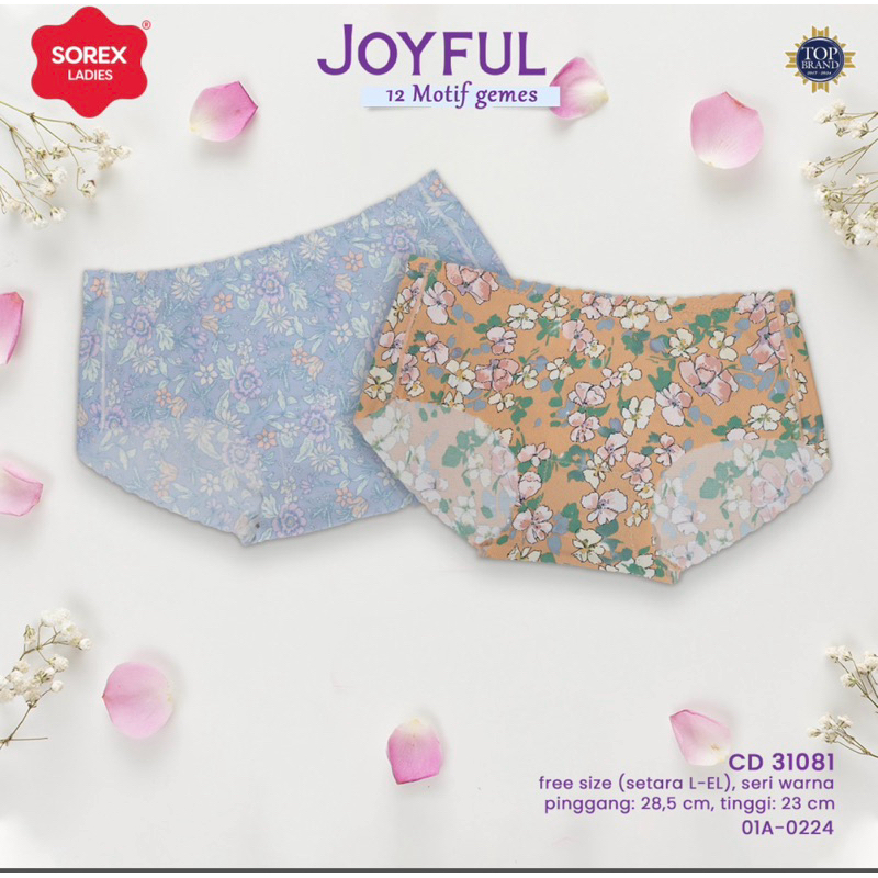 isi 6pcs SOREX CD FASHION WANITA SEAMLESS MOTIF CANTIK JOYFUL CD 31081- 31186 TANPA JAHITAN Anti Nyeplak