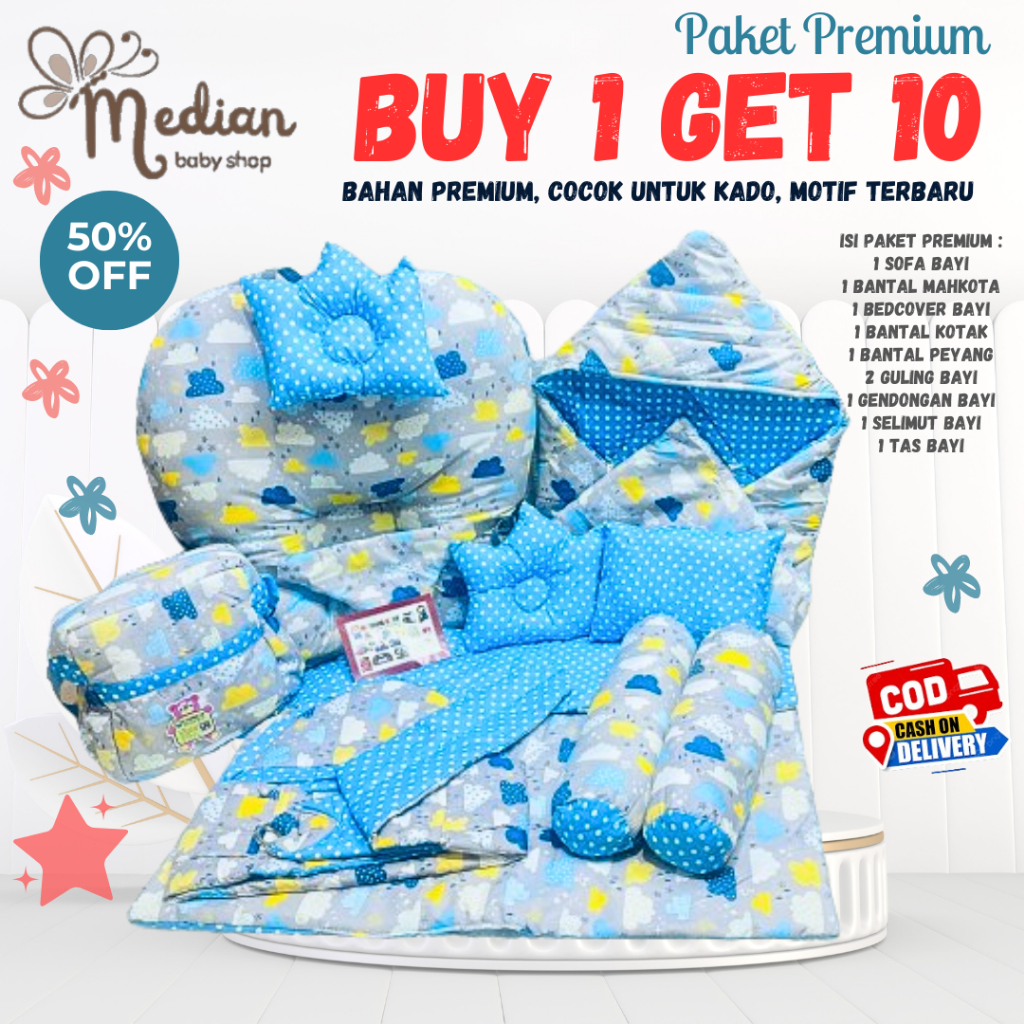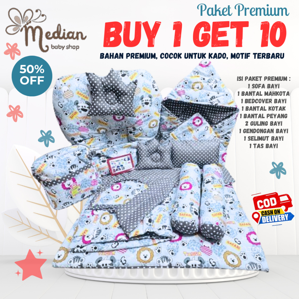 PAKET PREMIUM BUY 1 GET 10 SOFA BAYI/ BEDCOVER/ MATRAS BAYI/ SELIMU TOPI/ GENDONGAN SAMPING/TAS BAYI