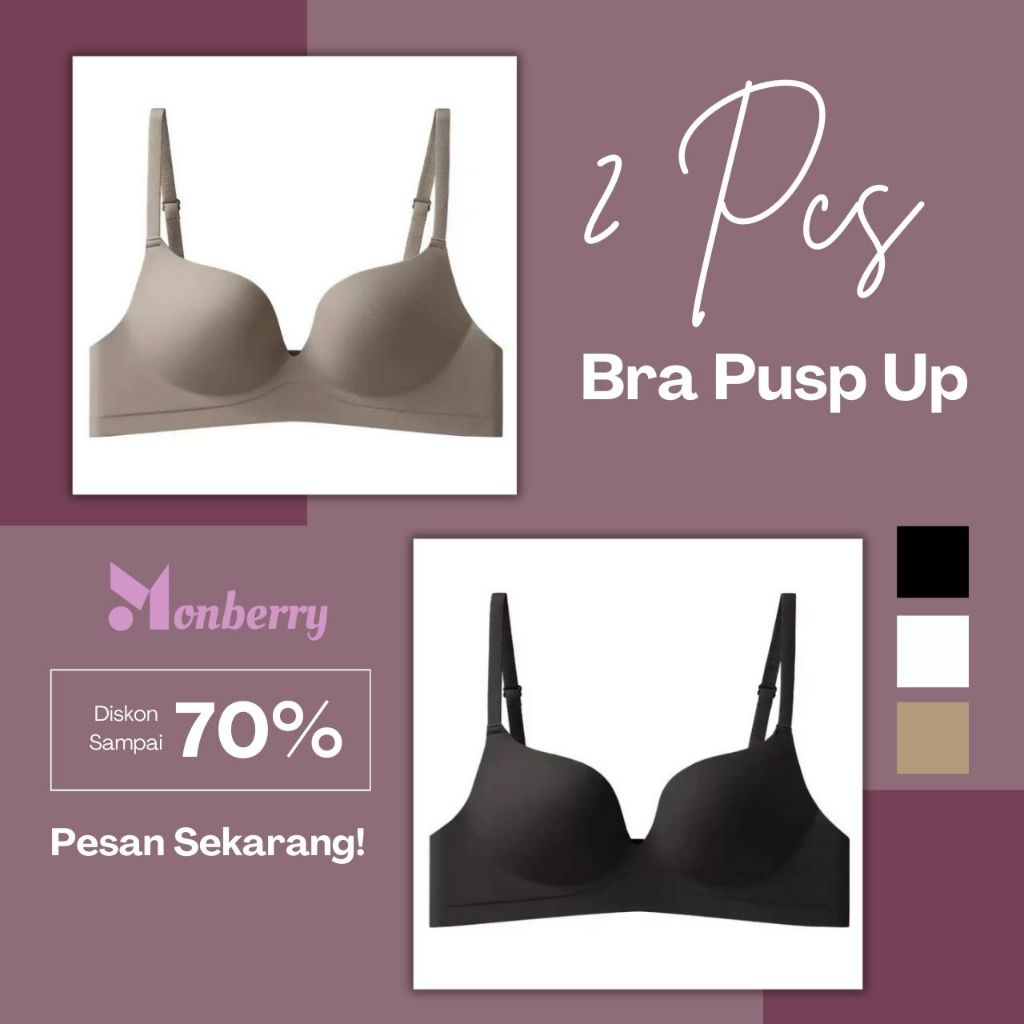 Bra Push Up 2 Pcs Wanita BH Seamless Monberry B2J Tanpa Jahitan Tanpa Kawat Tebal Women Woman Dewasa Pakaian Dalam Linge