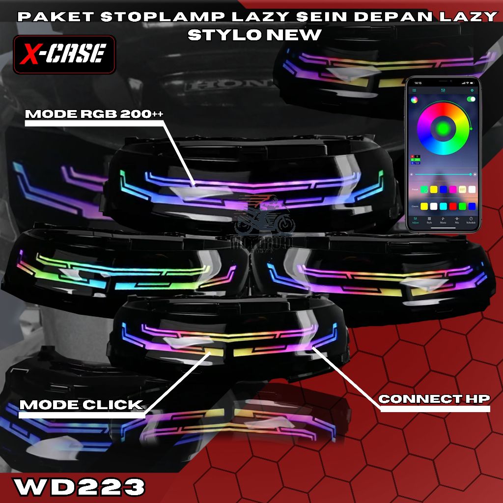 Paketan 2in1 Stoplamp Lazy Sein Depan Stylo 160 ABS RGB Connect HP Magnet Click e Include Soket
