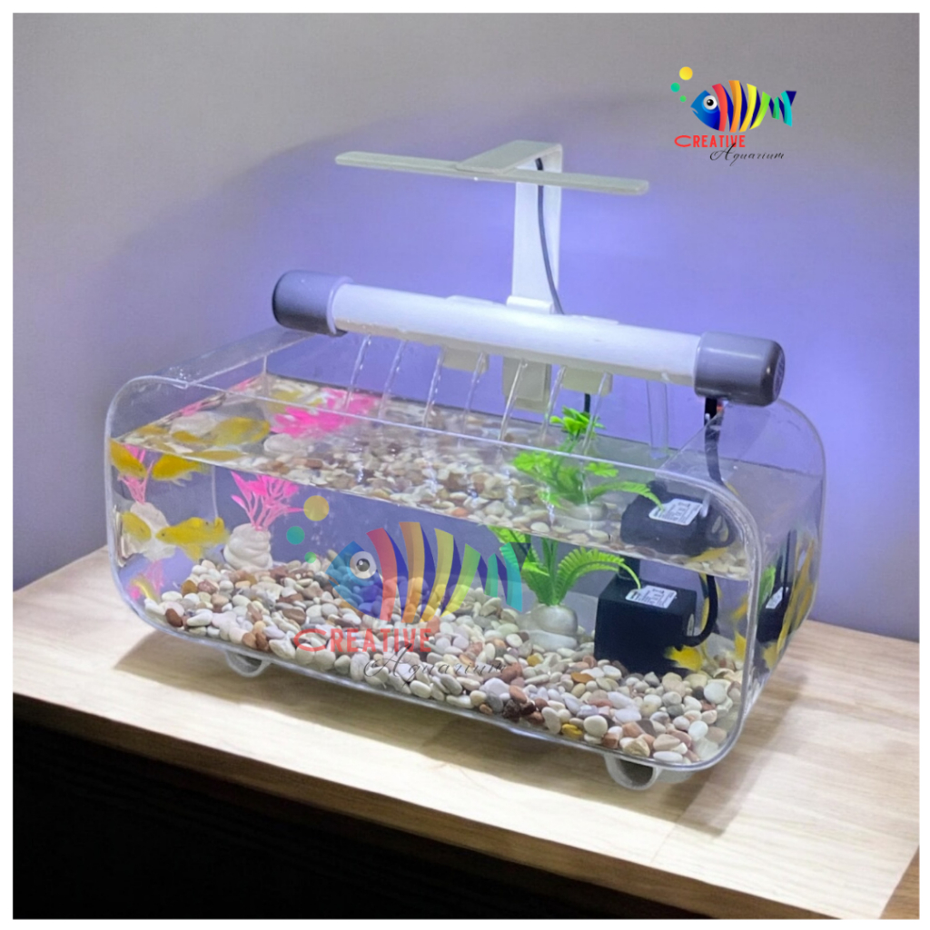 1 Set lengkap Aquarium kaca akrilik bening transfaran lengkap dengan mesin oxygn dan filter sirkulasi tinggal pakai (PT-