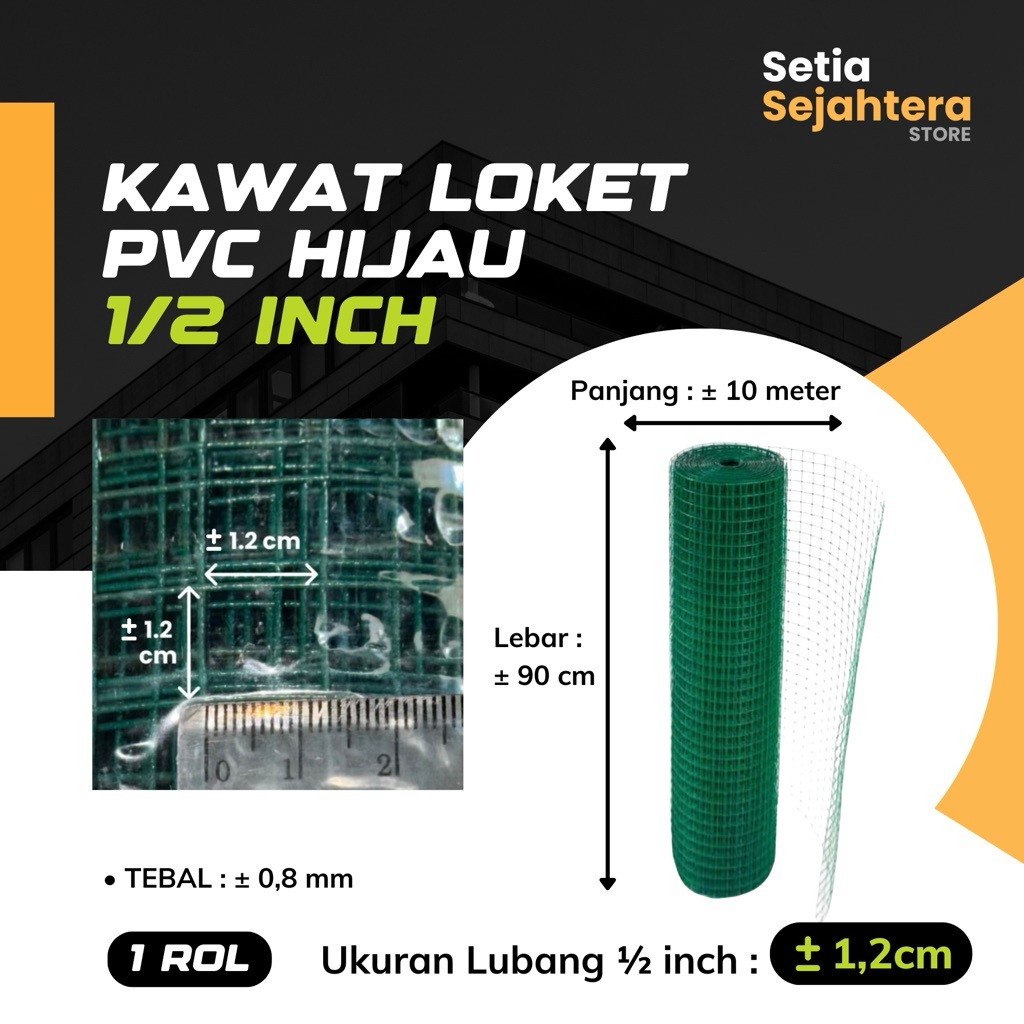 NETZ HFT LX ERDOS Kawat Loket PVC Ram Hijau 1/2 inch Kawat Kandang Hewan Ayakan Pasir - 1 rol