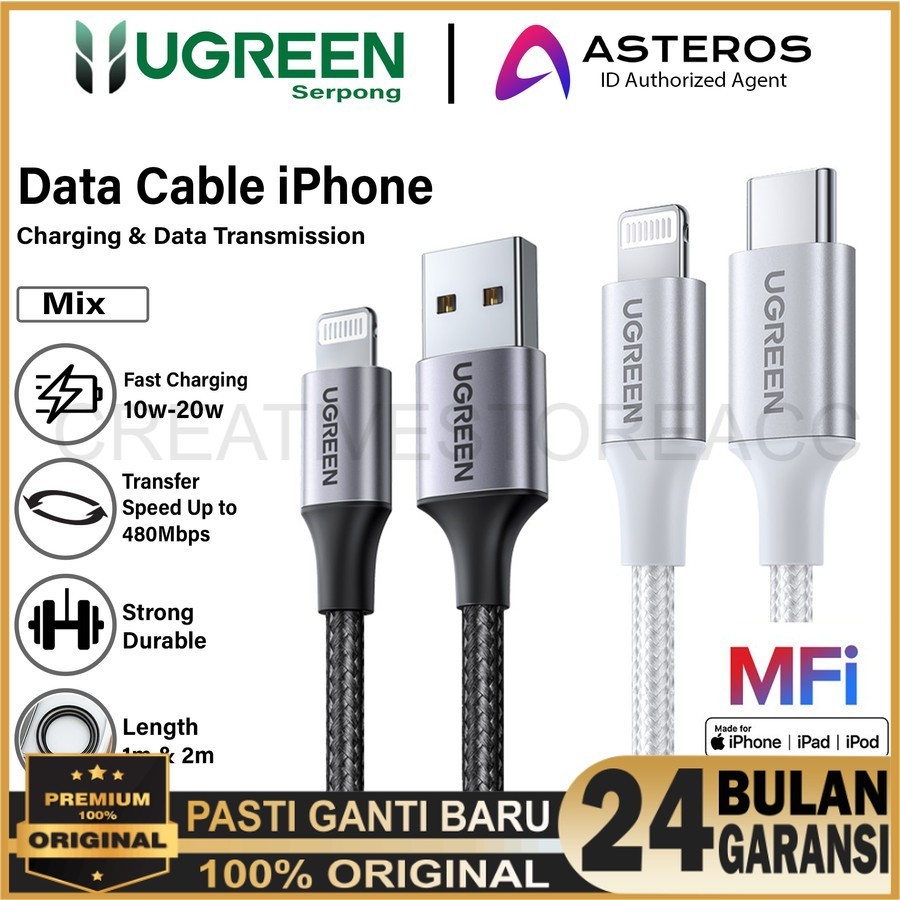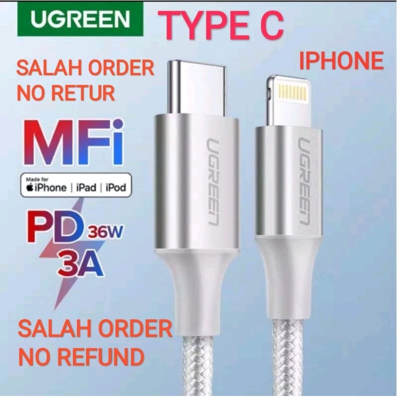 Ugreen Kabel Lightning MFi iPhone 13 14 12 8 11 X XR - Ugreen Kabel Mfi Support Power Delivery 3A