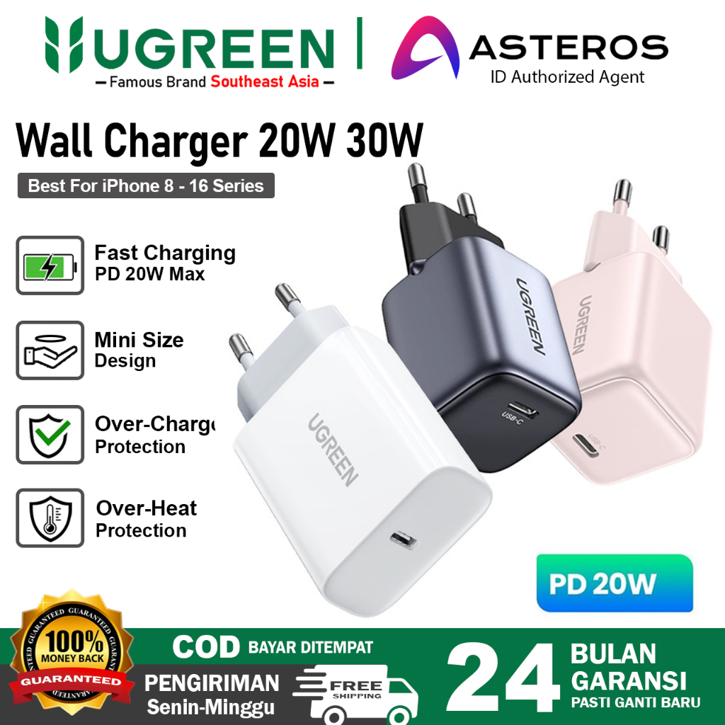 UGREEN Kepala Adaptor Charger Mfi Iphone 17 16 15 14 13 12 11 X PD Type C Fast Charging 20w 30w 45w