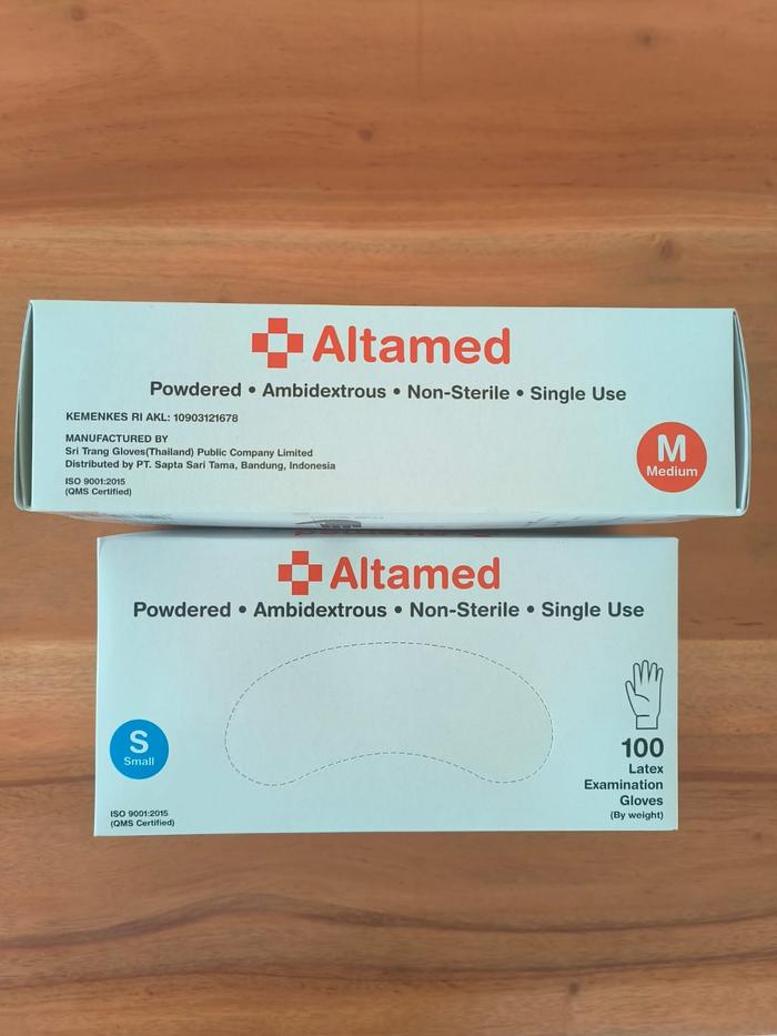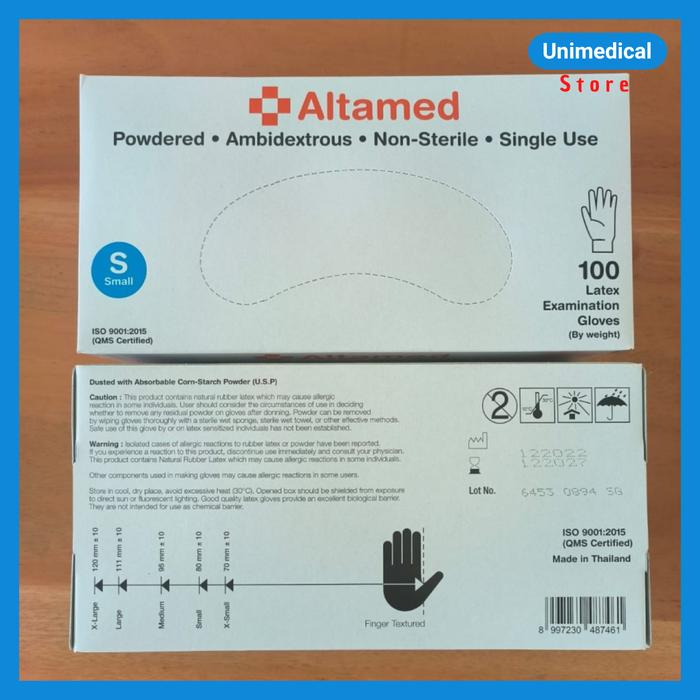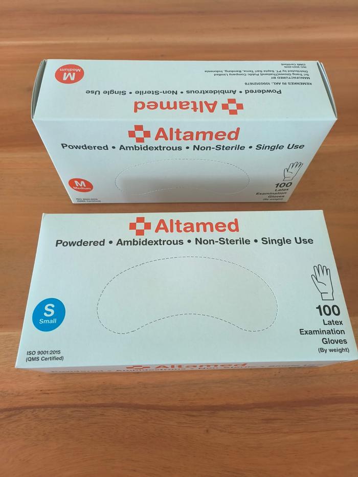 ALTAMED SARUNG TANGAN LATEX - EXAM GLOVE - HANDSCOON BOX100PCS - XS