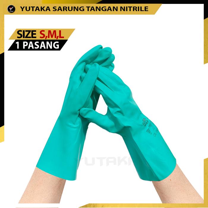 SARUNG TANGAN KARET YUTAKA NITRILE EN 374 TERMURAH RUBBER HIJAU - S