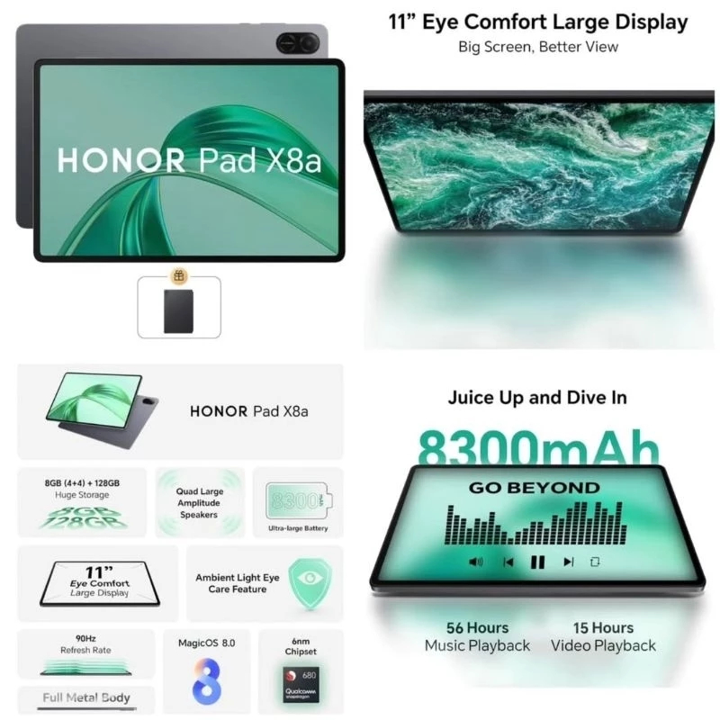 Honor Pad X8a [4GB+128GB] Display 11.0 inches - Snapdragon 680 - 8300mAh - Garansi Resmi Indonesia