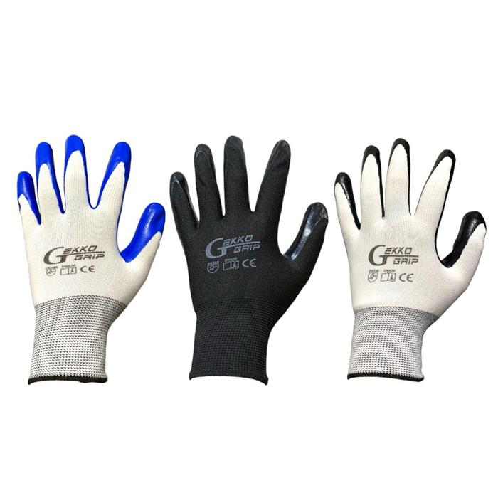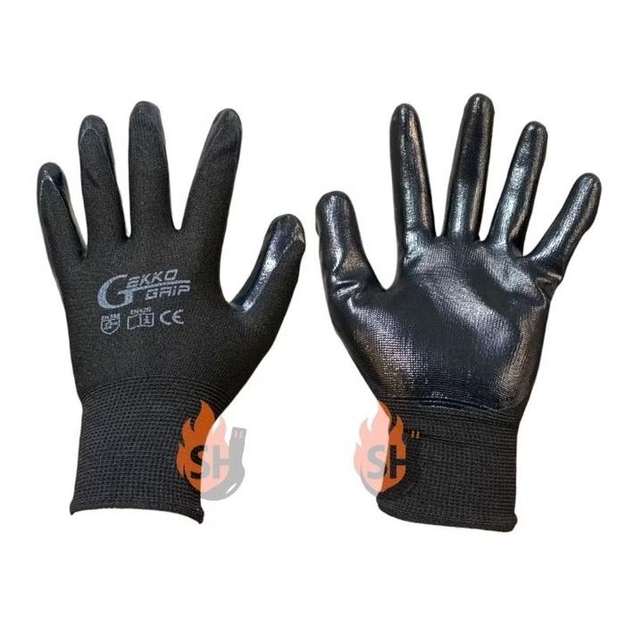 3 PASANG GEKKO GRIP SARUNG TANGAN SAFETY KARET LATEX ANTI KACA BIRU HITAM PUTIH PERLINDUNGAN EKSTRA PILIHAN WARNA SESUAI KEBUTUHAN ANDA - HITAM PUTIH