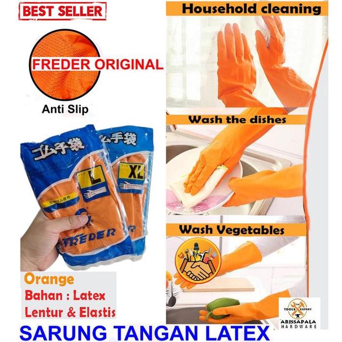 FREDER SARUNG TANGAN KARET LATEX SARUNG TANGAN CUCI KEBUN TEBAL LENTUR - BENANGHITAM - BENANGHITAM