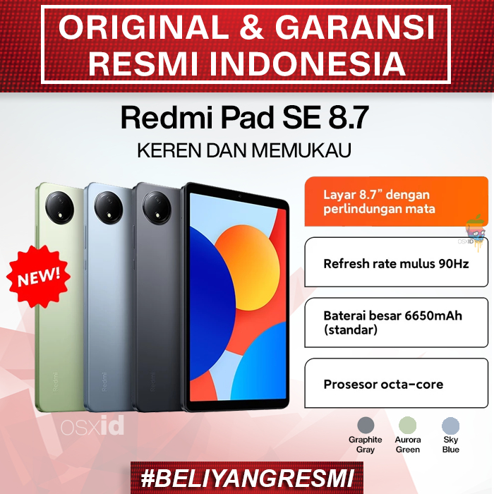 Xiaomi Redmi Pad SE 8.7 (4/128GB) | Layar 8.7" Perlindungan Mata | Refresh Rate 90Hz | Baterai 6650mAh | Prosesor Octa-Core - Garansi Resmi