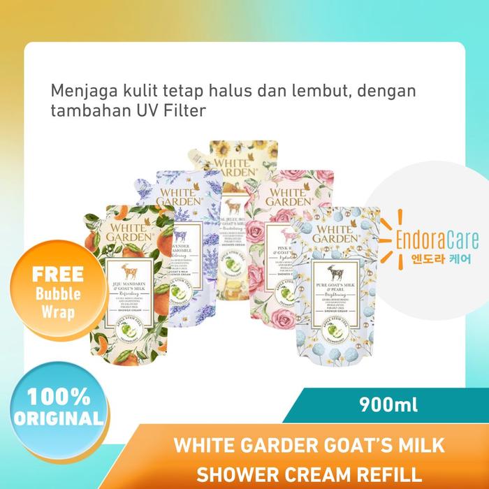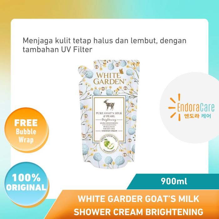 WHITE GARDEN Goat's Milk Shower Cream Sabun Mandi Cair REFILL 900ml - BRIGHTENING (Blue)