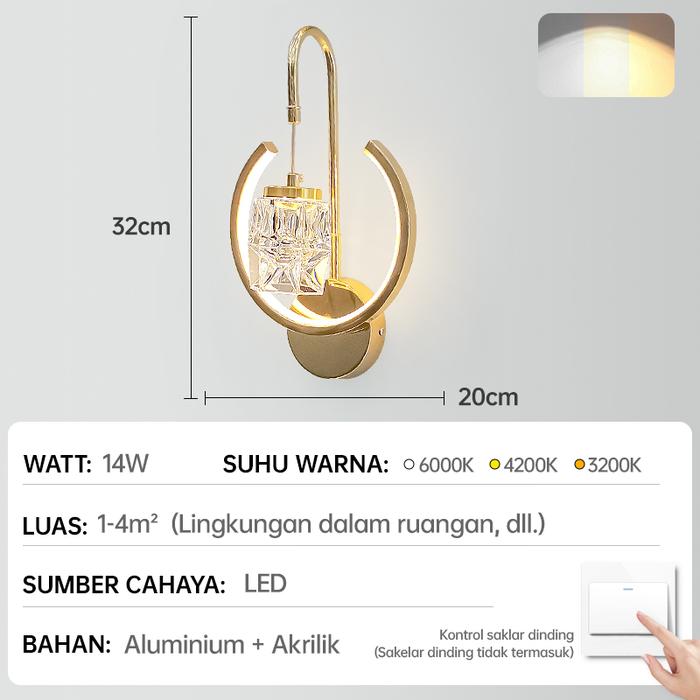 Lampu Dinding Kristal Modern Pelindung Mata 3 Warna Lorong Lampu Dinding Kamar Tidur Hias - B1-3【3 Warna】