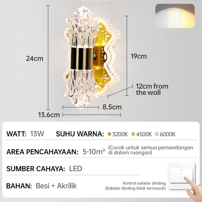 Lampu Dinding Kristal Modern 3 Warna Lampu Dinding Kristal R- Tamu Mewah Hias - B5-1【3 Warna 】