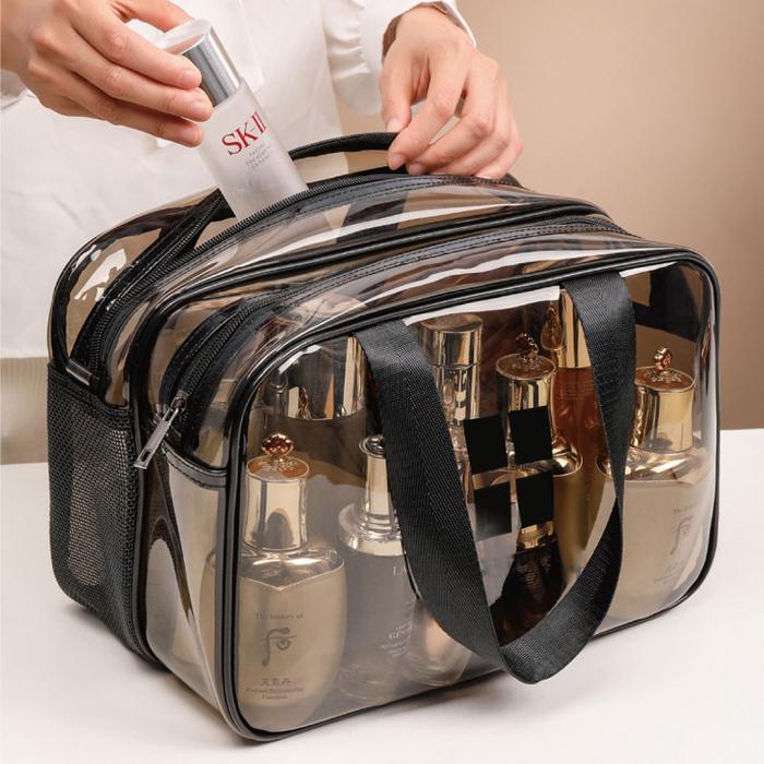 U-Living Washbag Double Layer Tas Make Up Kosmetik Tas Travel Organizer Wanita - AO010 Cewek - M 2LAYER TRANSBLACK