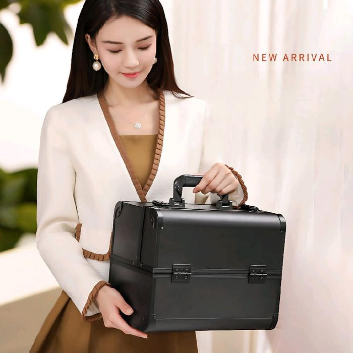 Tas Kosmetik Koper Multifungsi – Makeup Organizer Travel Bahan Kokoh Kompartemen Luas & Kunci - Hitam