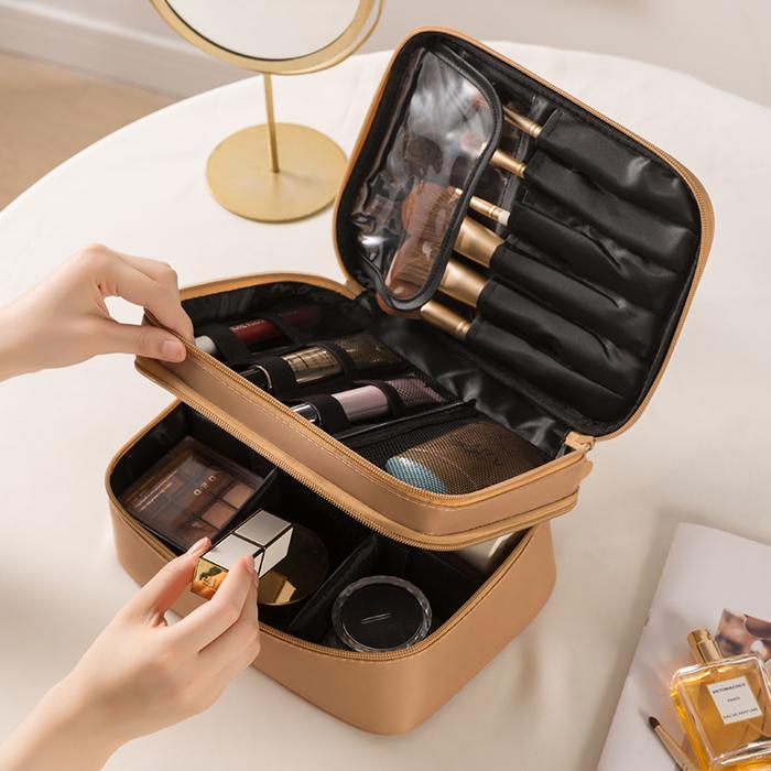 Tas kosmetik Lucu double Layer Travel Waterproff portable - 2 LAYER HITAM