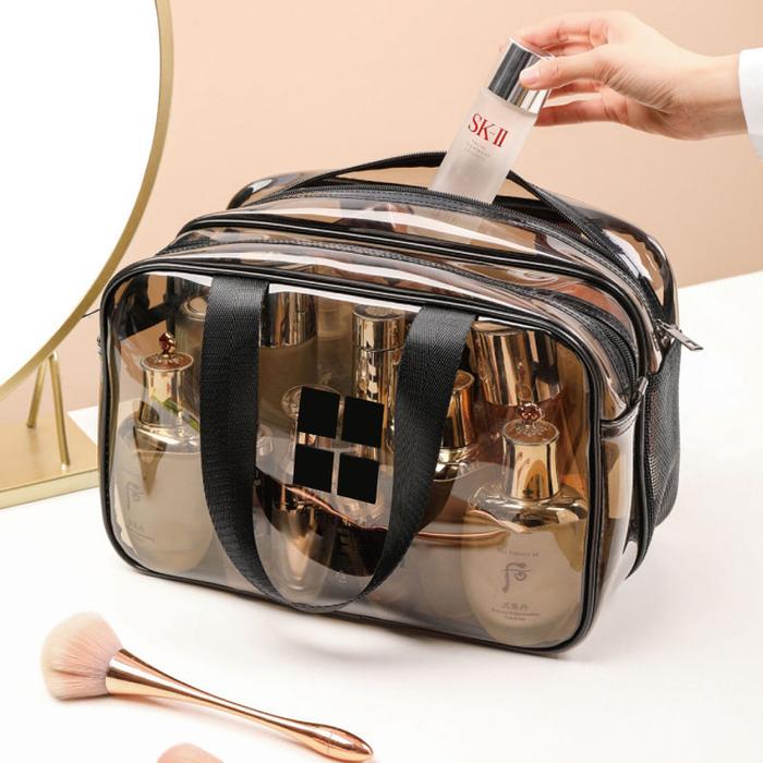 Joybos Washbag Double Layer Tas Make Up Kosmetik Tas Travel Organizer - M 2LAYER TRANSBLACK