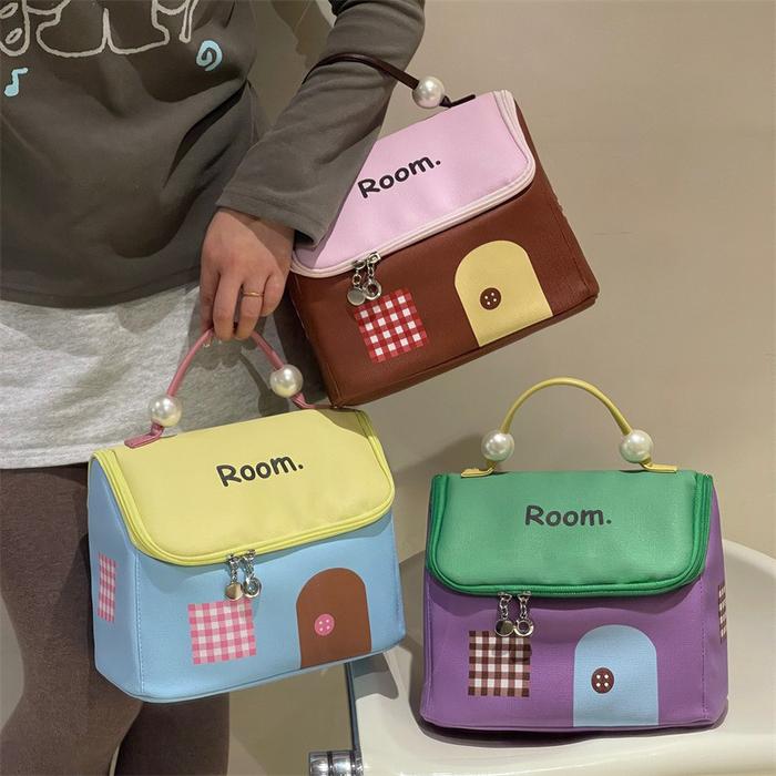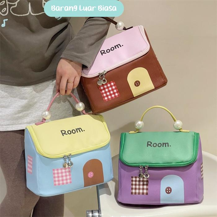 BLB Tas Penyimpanan Make Up Karakter Washbag Tas Organizer Kosmetik dengan Pegangan manik TM007 - House - Skyblue