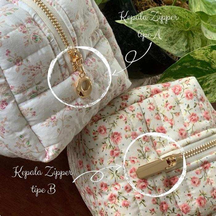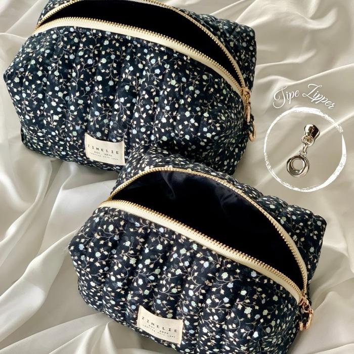 Quilted Pouch by Zimelie - Tas Makeup Organizer Travel Puffy Pouch Kosmetik Aksesoris Skincare - Floral Noir (a) L