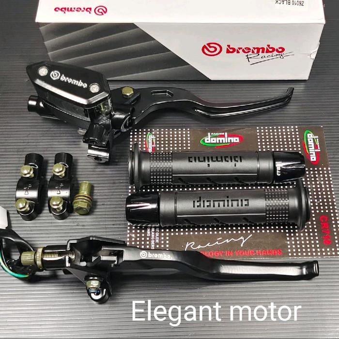 Paket Master Rem Tabung Tipe Oval Universal Motor + Handgrip Dominoo + Jalu Stang CNC - Foto - Black