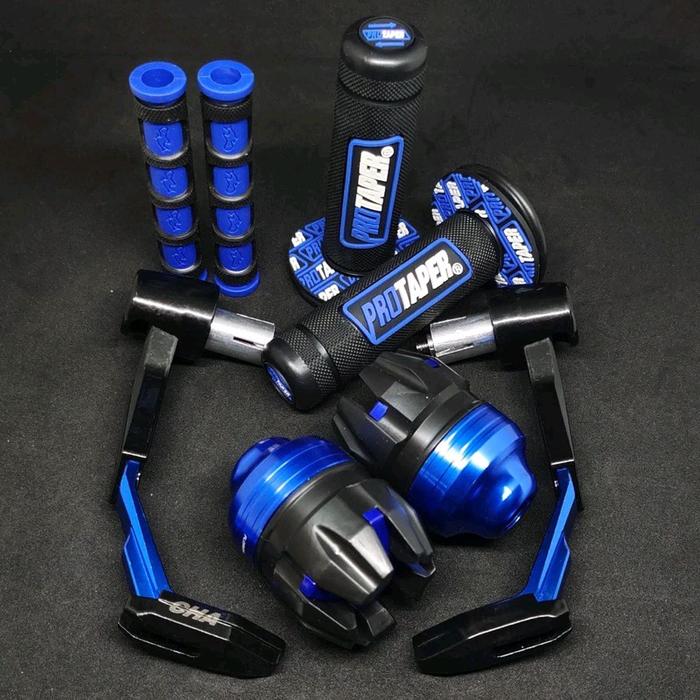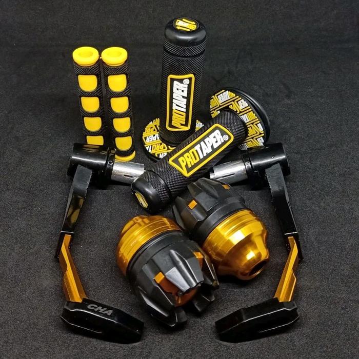 Paket 4IN1 Handgrip Protaper+Proguard Robot+Karet Handle+Jalu as Roda Universal semua motor MD 99 Variasi - kuning