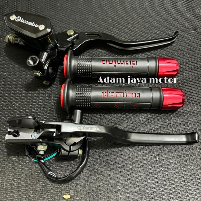 PAKET SET 3IN1 MASTER REM TABUNG OVAL KACA + HANDGRIP DMNO + JALU STANG CNC / UNIVERSAL MOTOR JH ACC SHOP - PAKET MERAH