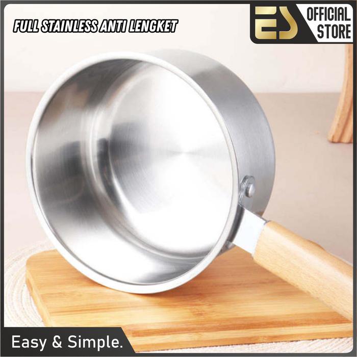 [ES x Mak San] Panci Sup Panci Susu Stainless Steel Dengan Kukusan Gagang Kayu Anti Panas Dengan