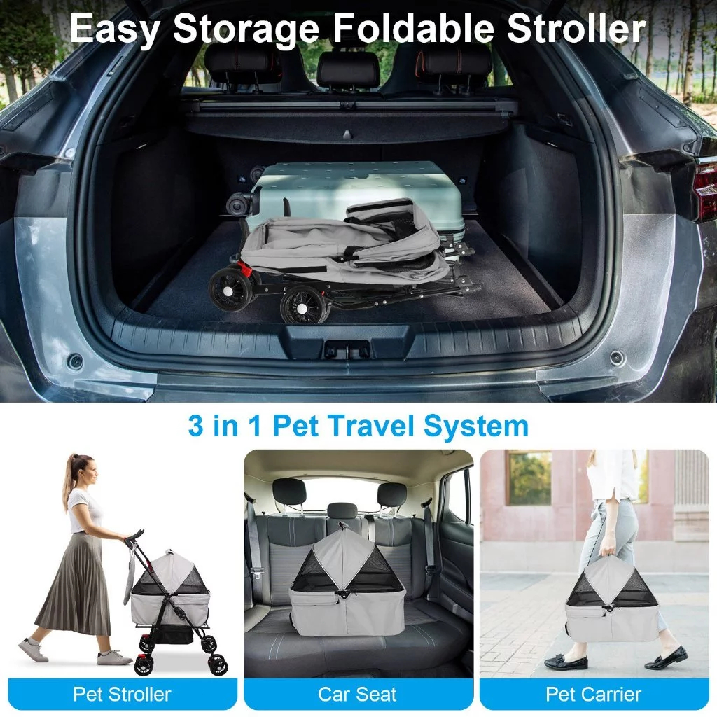 Kereta Dorong Hewan Peliharaan Pet Stroller Comforter One-Hand Fold Portable Troli Anjing Kucing
