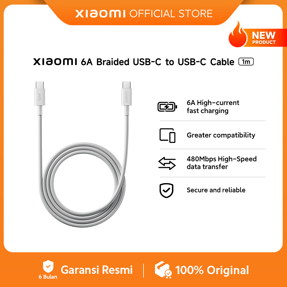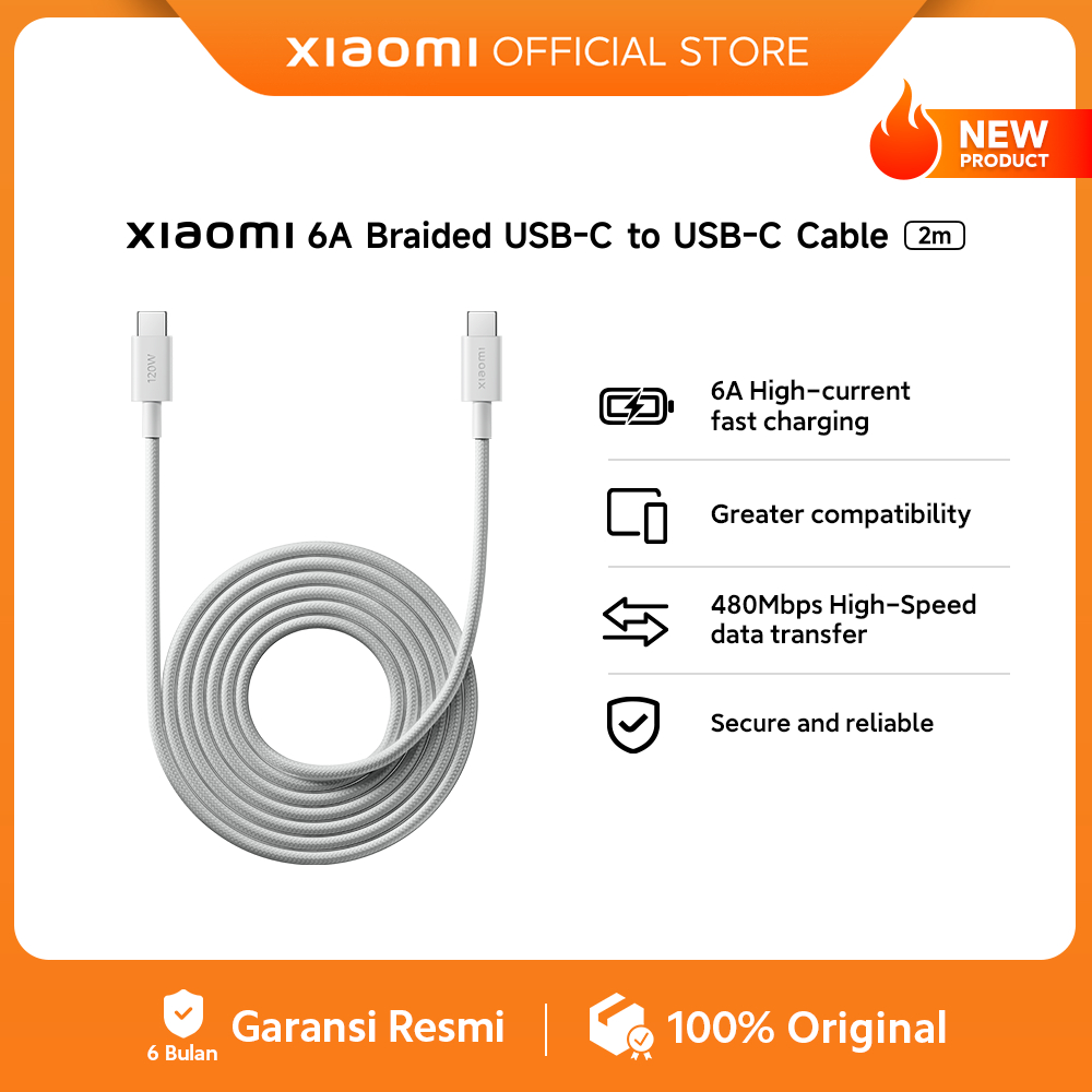 Xiaomi 6A Braided USB-C to USB-C Cable | 6A High-current fast charging | Greater compatibility | 480Mbps High-Speed data