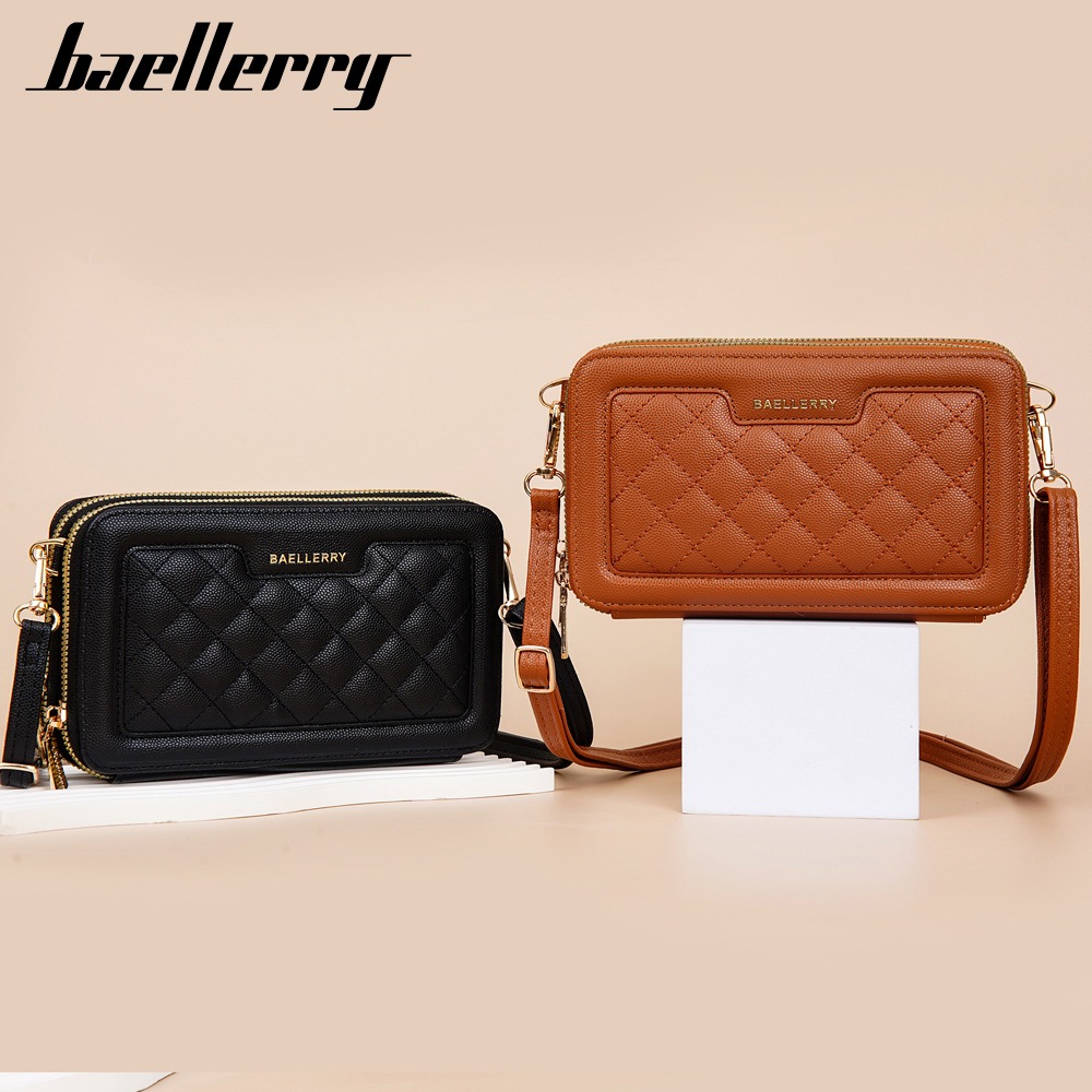 BAELLERRY N8332 Tas Selempang Wanita 2 IN 1 Dompet Handphone Bahan Kulit PU Leather Premium