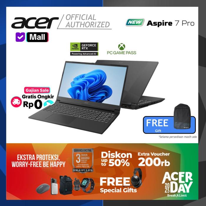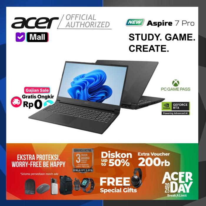 GAJIAN SALE ACER ASPIRE 7 PRO GAMING A715-59G | CORE I5 RTX3050 I5 12450H 16GB8GB 512GB SSD RTX3050 6GB 15.6" FHD 144HZ IPS W11 OHS24 BLACK NH.QX0SN.001, 56K7 LAPTOP KULIAH, GAMING, STEM - 8GB