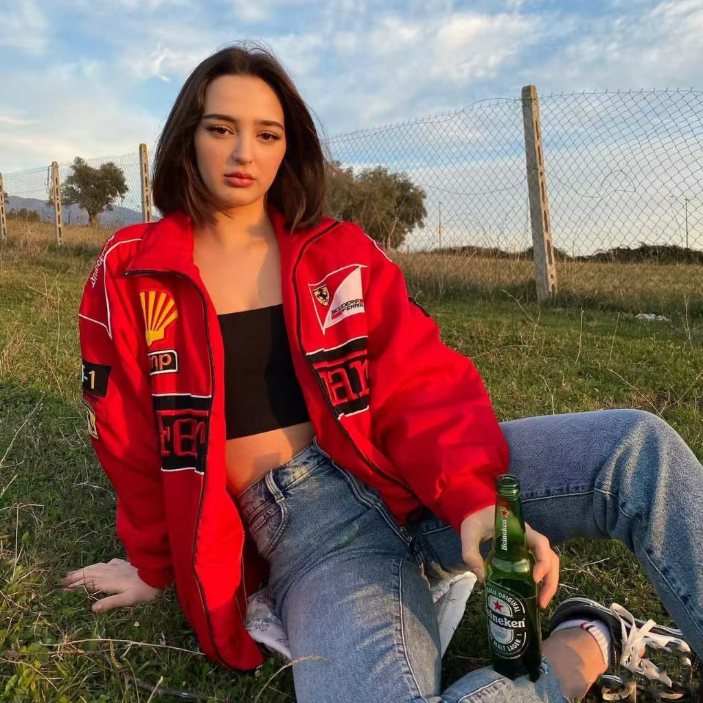 GTY Jaket Vintage Racing Pria Dengan Ferrari F1 Bordir Premium Soft Parasut Olahraga Windbreaker Varsity Jacket Uni
