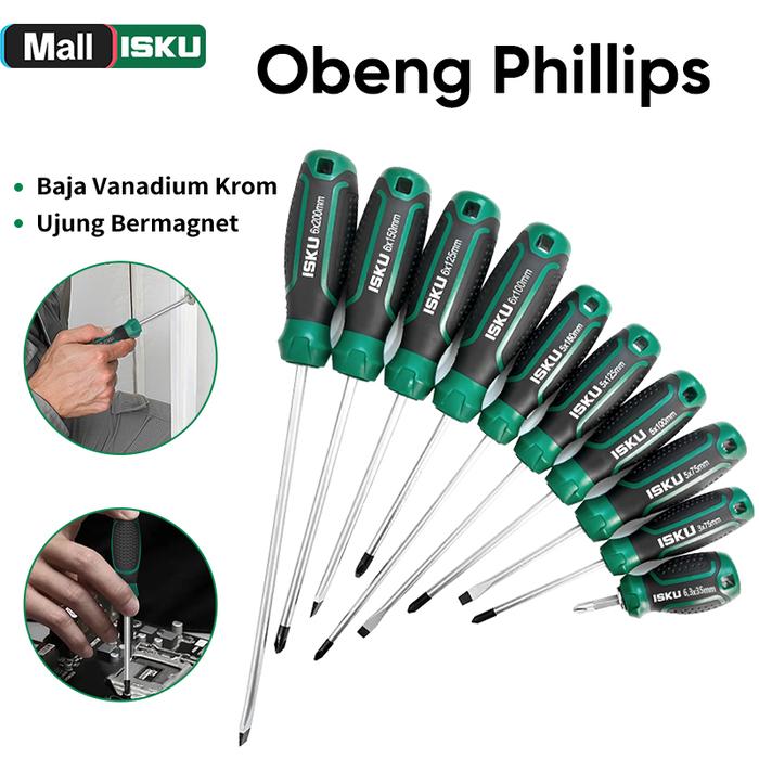 ISKU OBENG PLUS MINUS MAGNETIK CR-V ANTI-SLIP BAJA VANADIUM KUAT TAHAN AUS GAGANG ERGONOMIS ANTI-MINYAK & ANTI-GULING PERKAKAS TANGAN PROFESIONAL - “+” 375MM