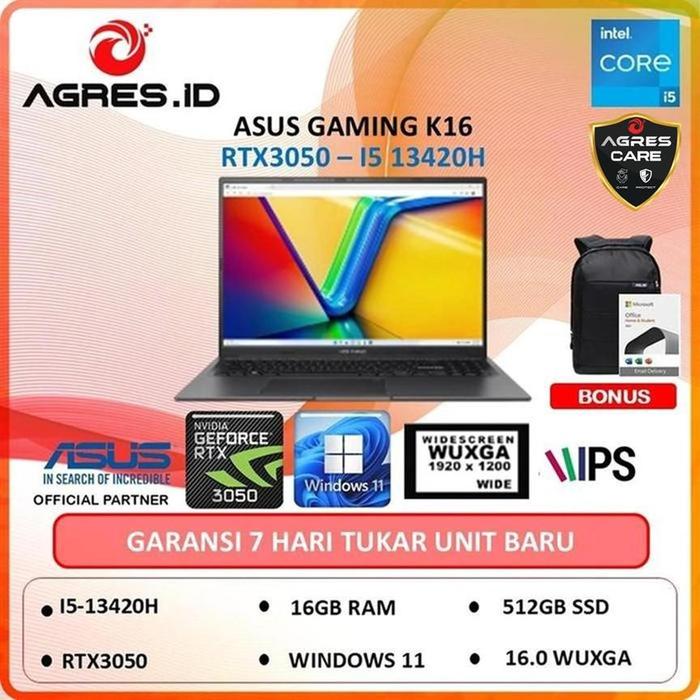 ASUS GAMING K16 K3605VC RTX3050 I5 13420H 16GB 512GB W11+OHS 16.0WUXGA IPS BLIT - NON BUNDLE, 8GB