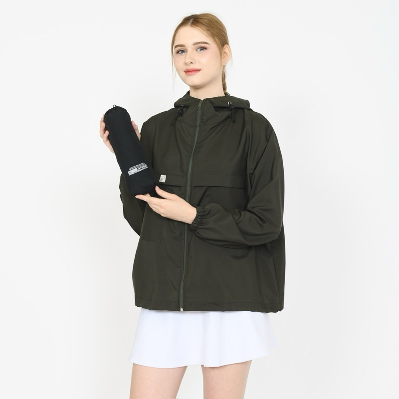 GRATIS pouch Jacke Mighty.Up - Jaket Olahraga Parasut Polos Pria/Wanita Sauna Suit, Jogging, Lari, Bersepeda, Despo, Gym